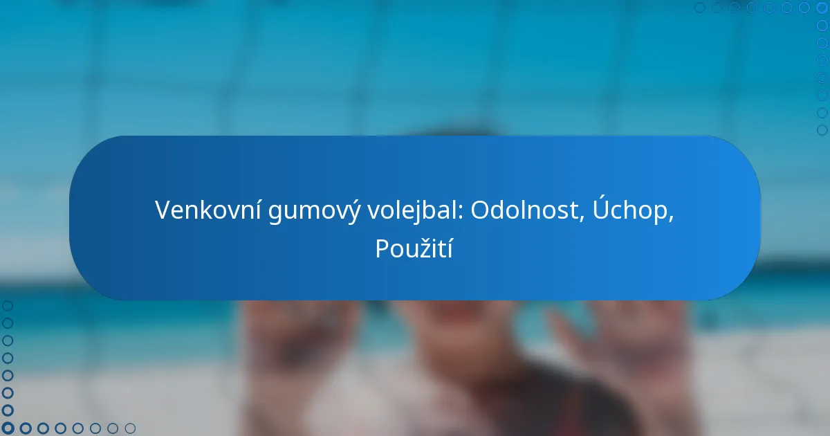 Venkovní gumové volejbalové míče jsou navrženy pro odolnost a výkon v různých povětrnostních podmínkách, což je odlišuje od vnitřních a plážových volejbalových míčů. Obvykle mají tvrdší vnější vrstvu, která poskytuje lepší odolnost proti opotřebení, a zároveň nabízejí vynikající úchop pro hráče.